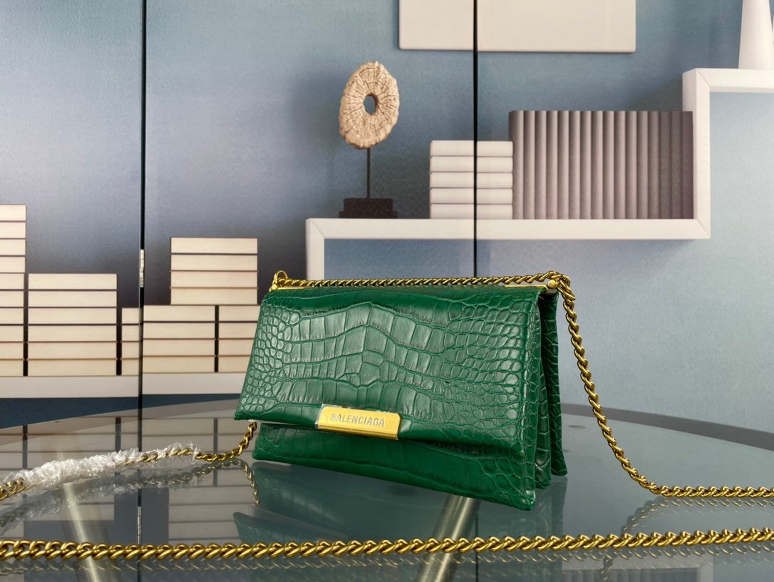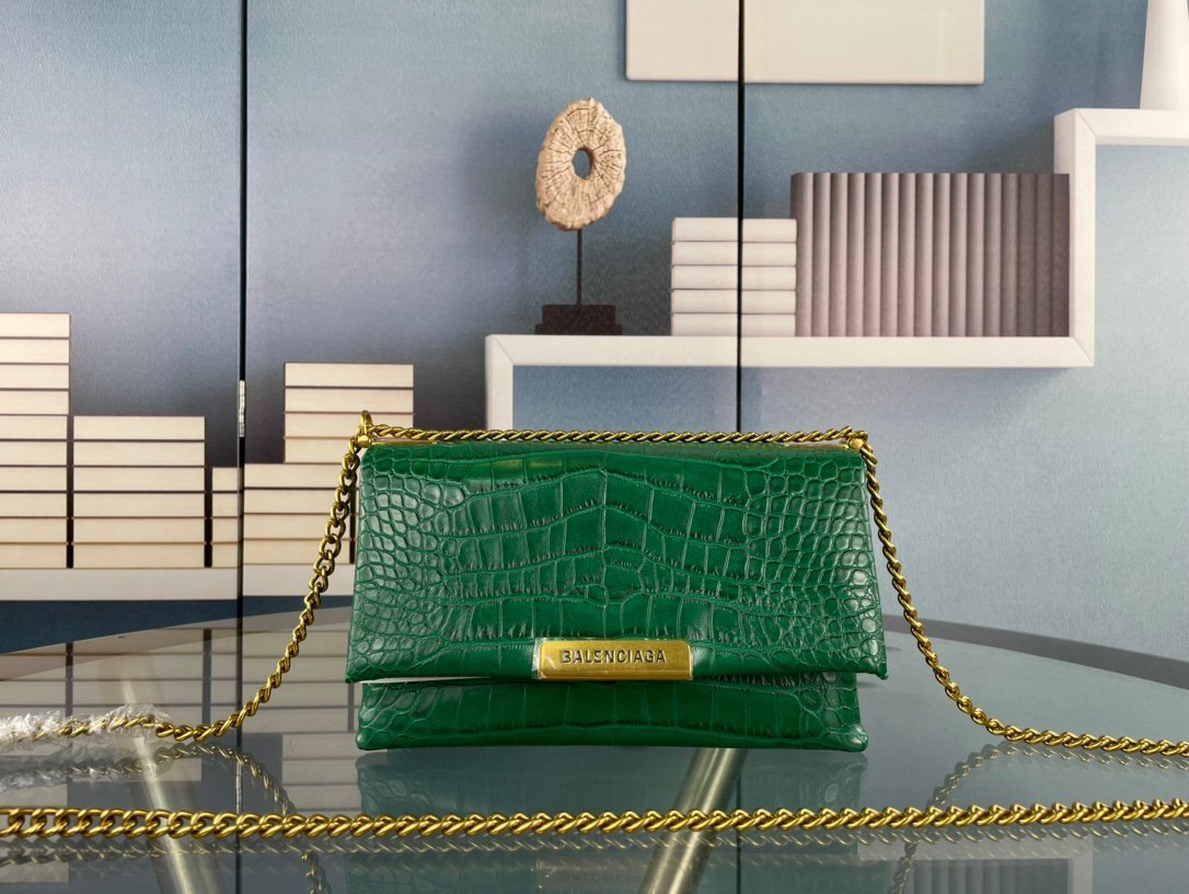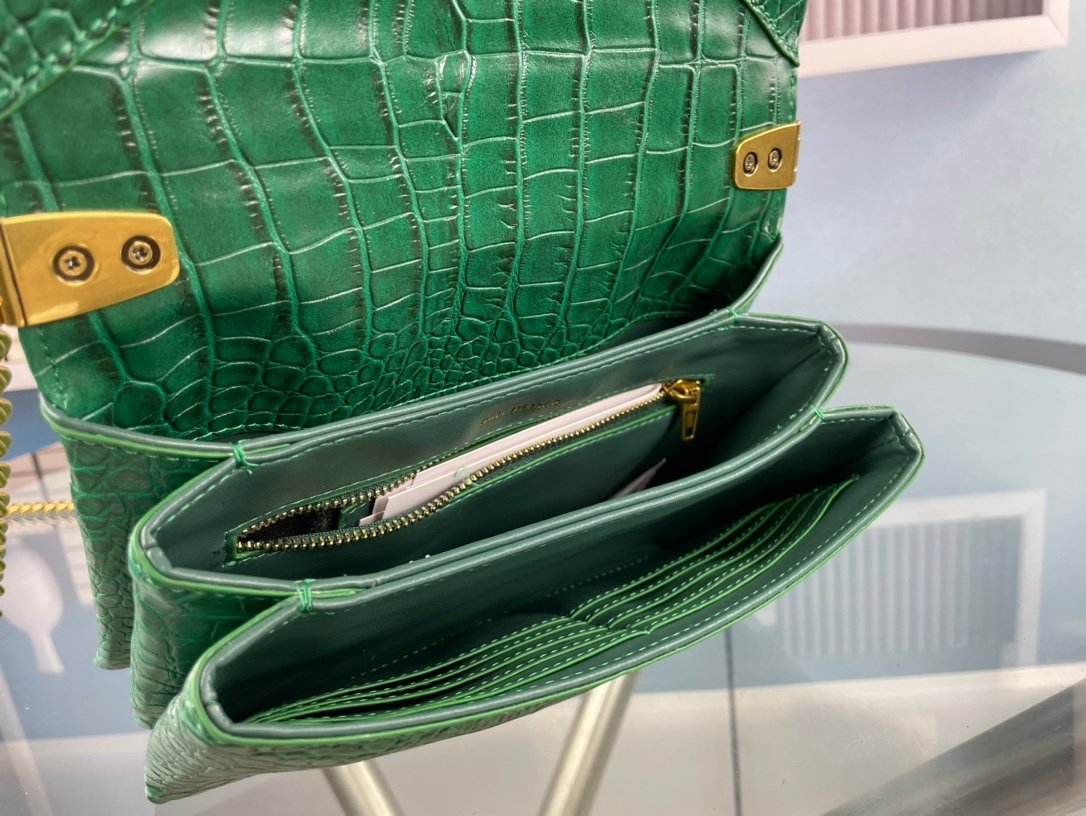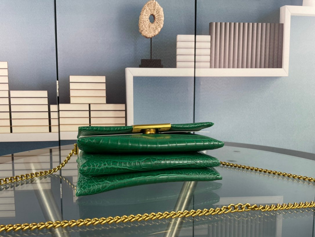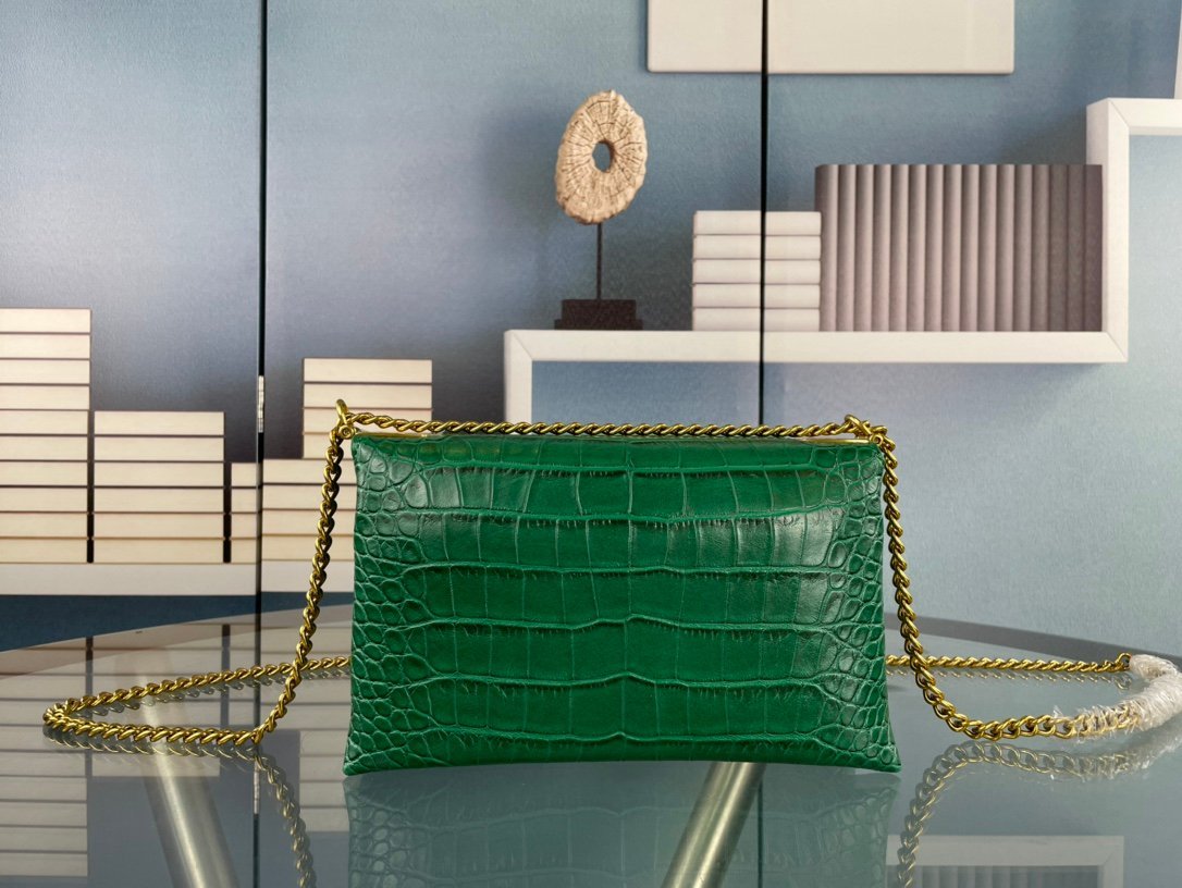 The newly launched small square crocodile pattern bag. The design of the chain length allows it to be worn on one shoulder or crossbody. The simple crocodile pattern combined with the logo mark instantly fills it with a high level of sophistication.