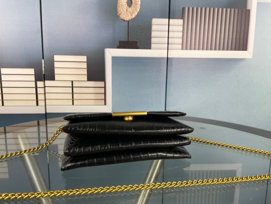 The newly launched small square crocodile pattern bag. The design of the chain length allows it to be worn on one shoulder or crossbody. The simple crocodile pattern combined with the logo mark instantly fills it with a high level of sophistication.