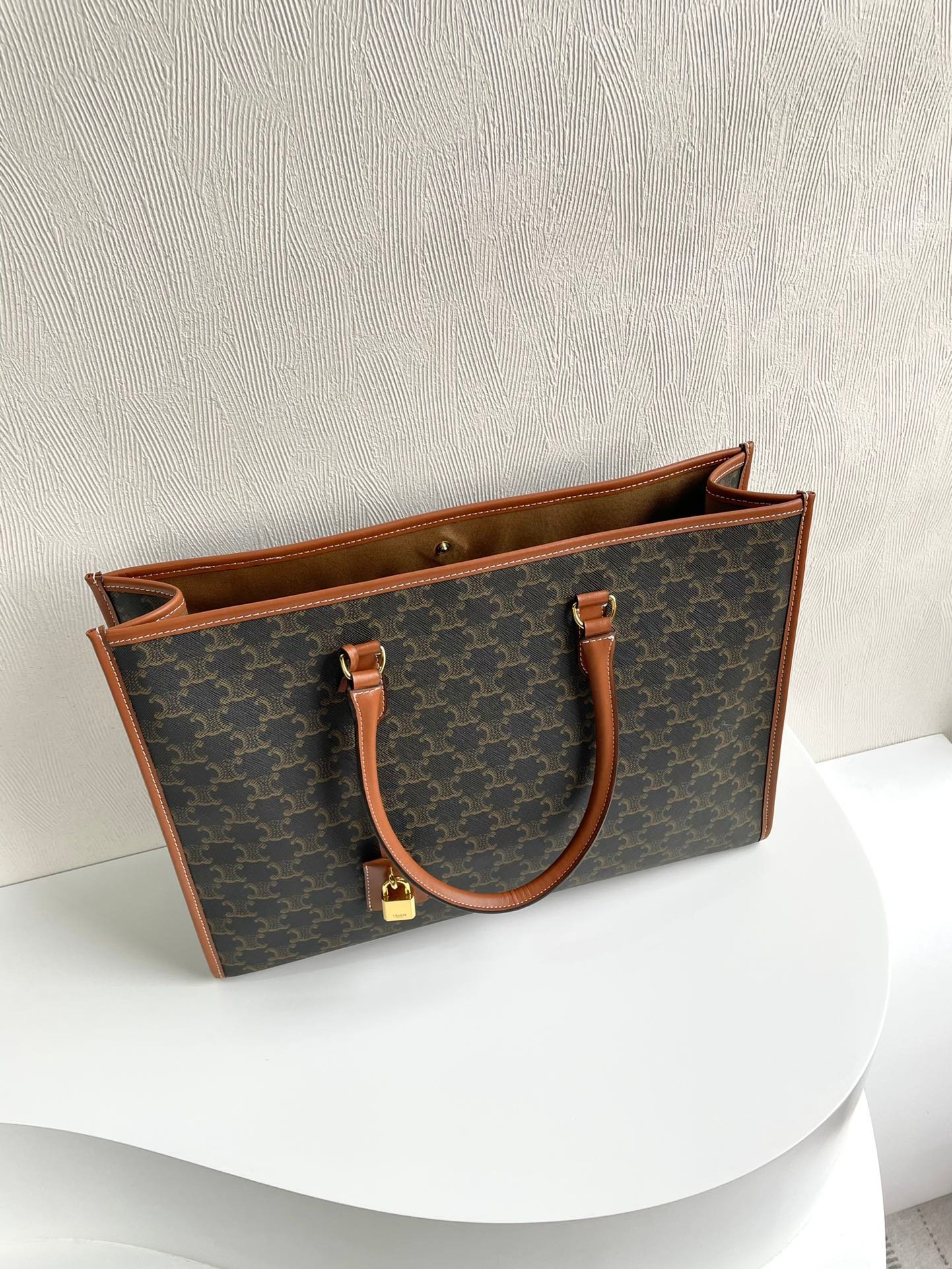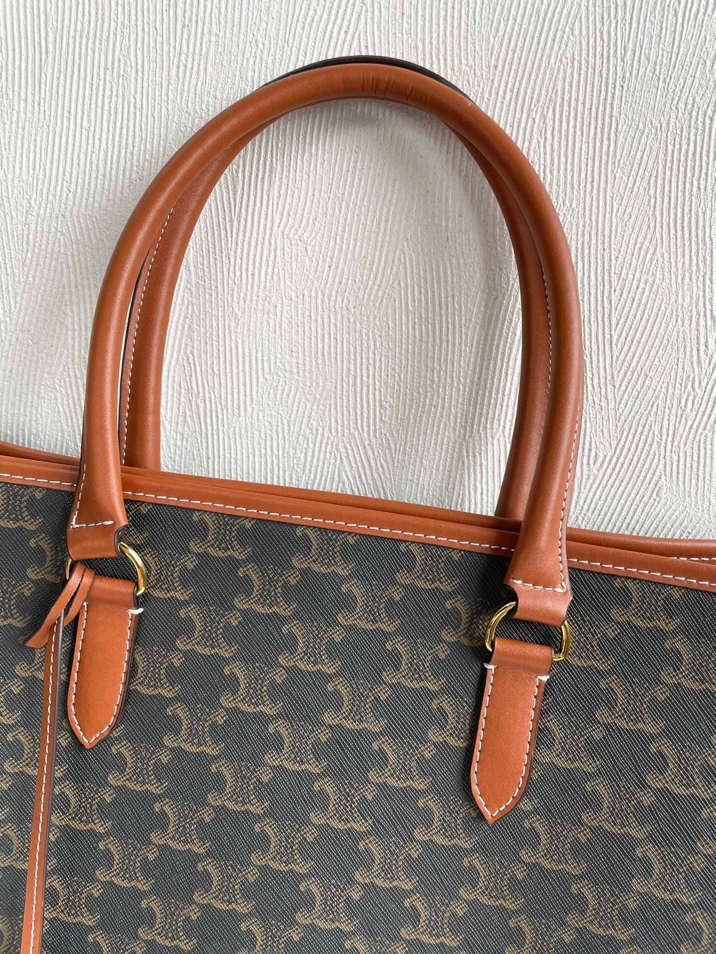 👑New CELIN product/TRIOMPHE CANVAS logo print and calfskin horizontal CABAS handbag.