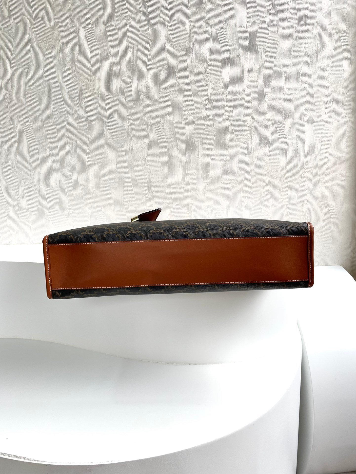 TRIOMPHE CANVAS logo print, calfskin edging.