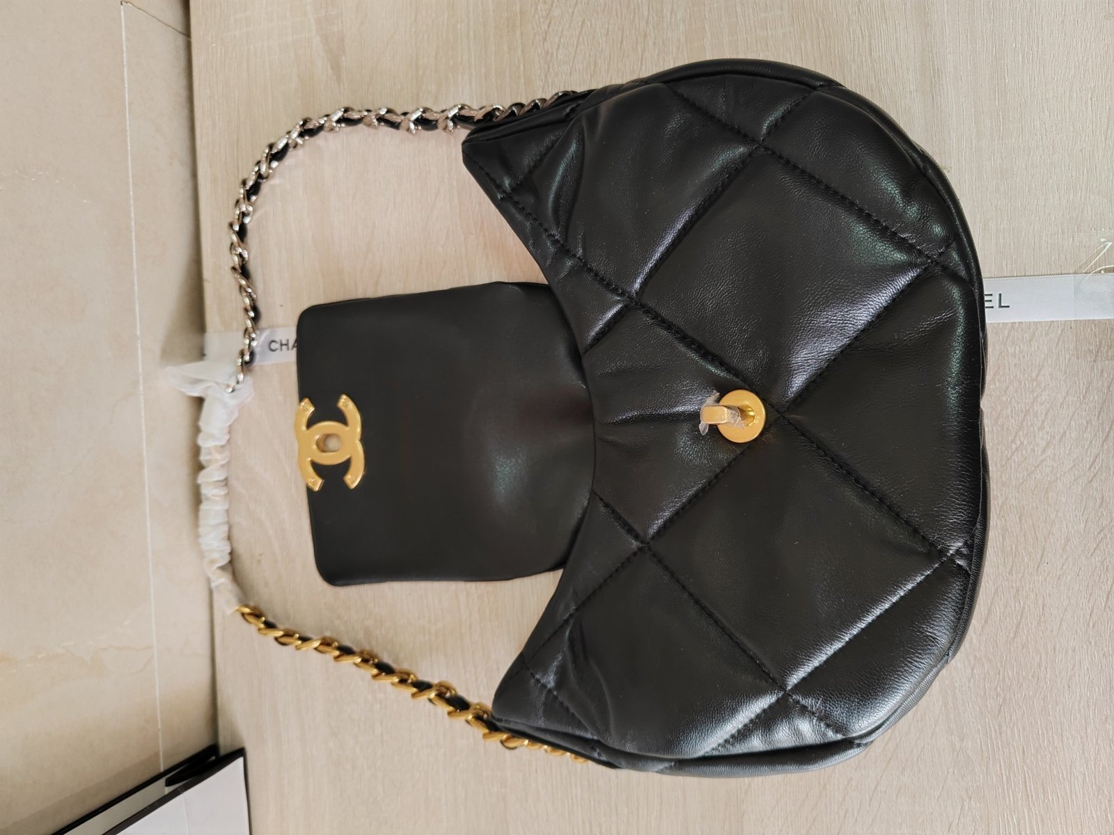 24c 19 underarm bag! Chubby pumpkin-shaped design, large diamond pattern, and comfort elements are newly interpreted. Color-blocked leather-threaded chain + leather upper chain shoulder strap, designed with the classic double C logo, is the personalized style design of the Chanel 19 handbag. The overall soft bag body design feels more casual and is lighter in weight. Versatile and practical good bag.