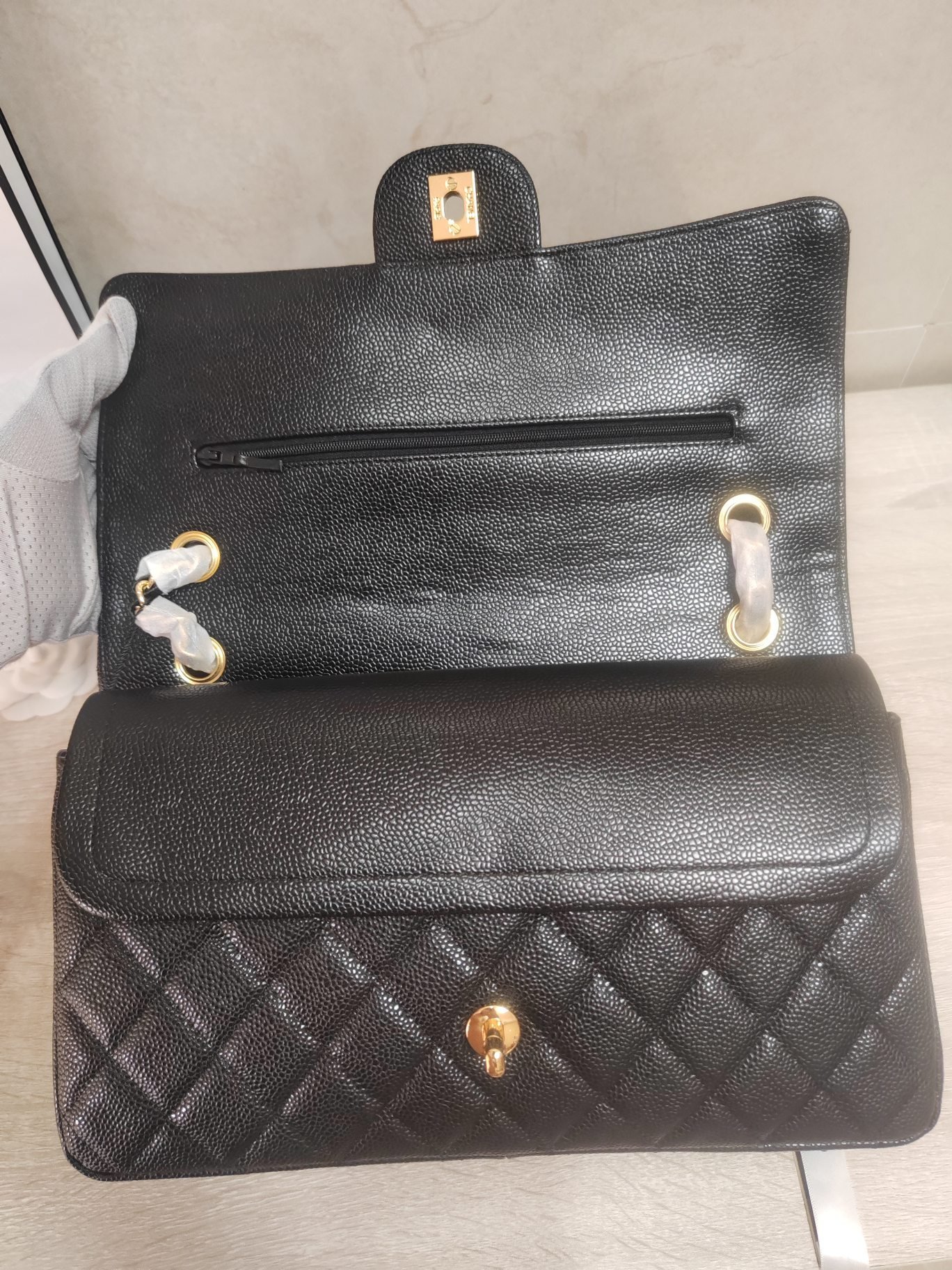 Top original 👜 Chanel calfskin caviar, cf series diamond bag by Chanel. #Recommended for exquisite goddesses. Beauty and practicality coexist. In recent years, it has been extremely popular and this Chanel model is extremely excellent. Versatile for leisure, professional, and fresh styles. The material is original calfskin craftsmanship💼. The inner compartments are convenient for storage. Carrying it on the shoulder is leisure and stylish. Carrying it by hand is not tacky and has a great queenly demeanor. Generous and neat, extremely beautiful.👍👍👍 Size: 30*19*10cm. Model number: 1113 gold buckle black.