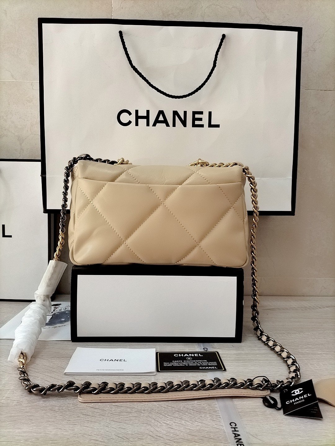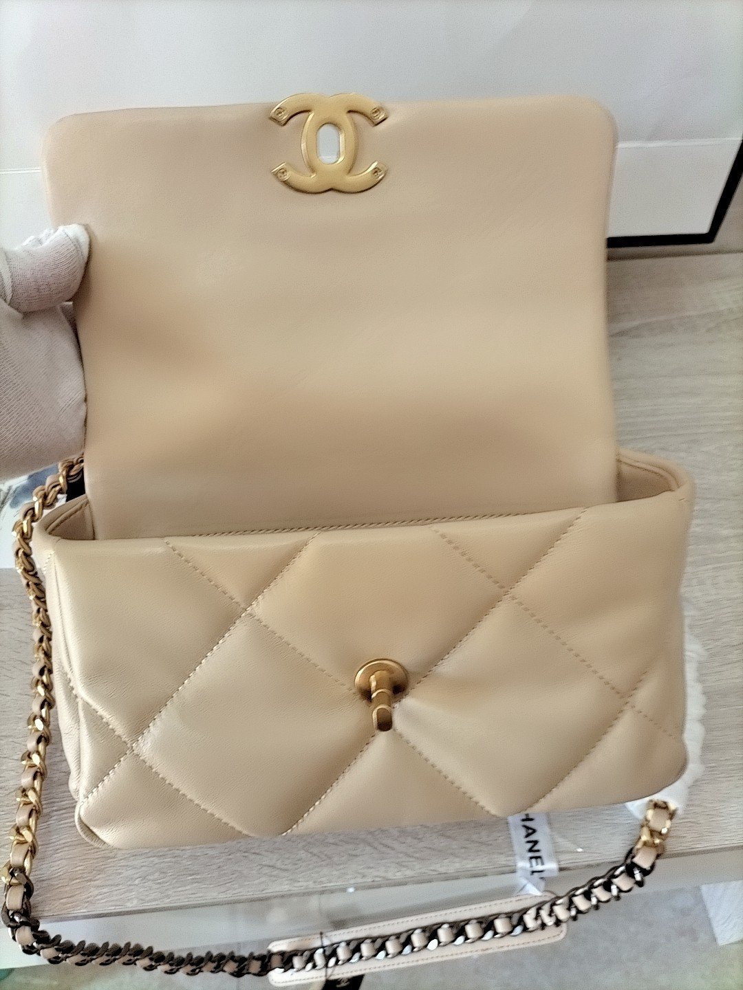 19Bag series gives people a strong retro style, with a little lazy and free, its design inherits a variety of classic elements of the predecessor bag, the whole bag is very fluffy, soft in the hand, color matching hardware chain ⛓ leather to version hardware super positive [strong] CHANEL ❤ silver: white: gold: 3 kinds of metal mixed shoulder straps, thick chain highlights the casual style, this non-shaped bag is different with different clothes back method is very casual, leather wear chain Logo is estimated to be one of the characteristics of 21 years, a hit, the key is each so nice.