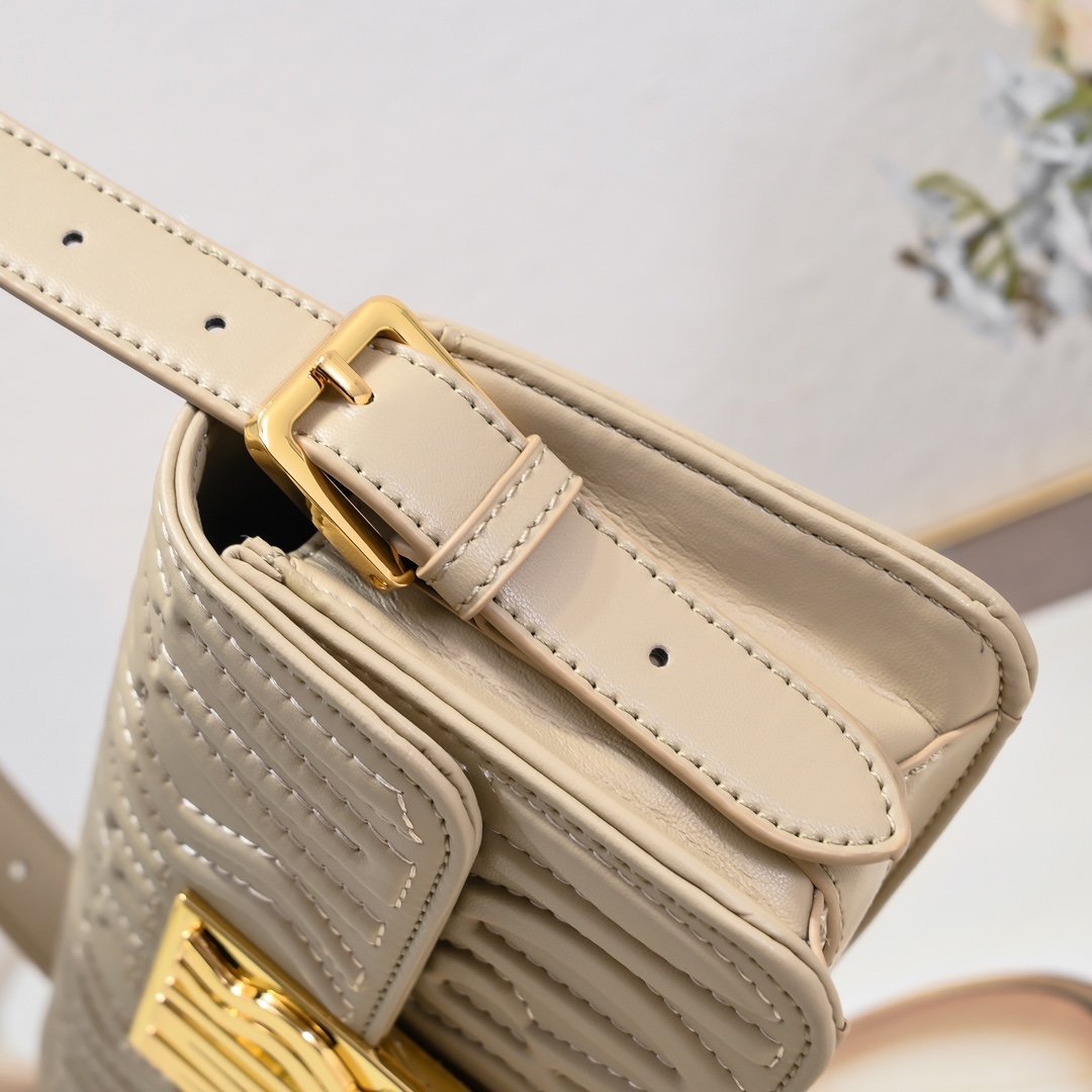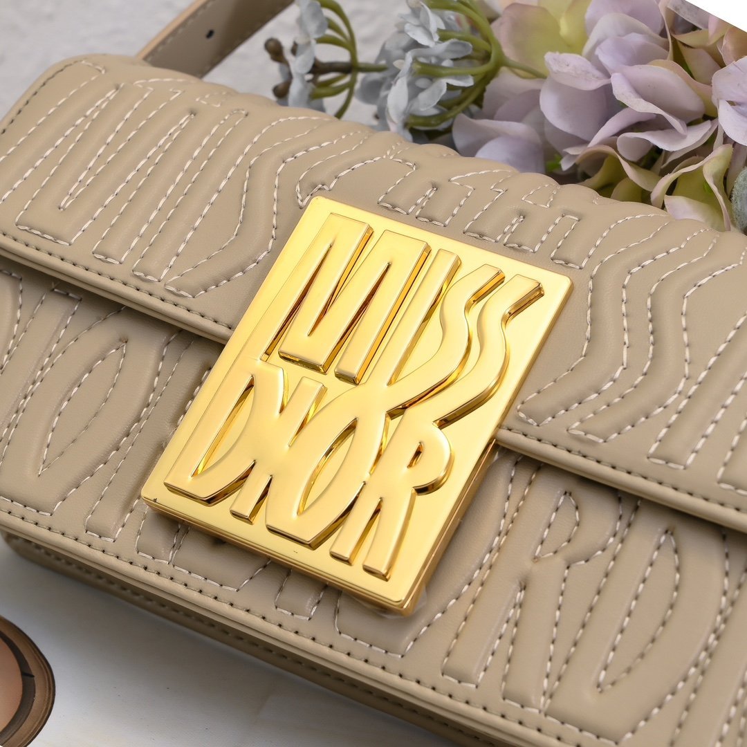 This Miss Dior flap handbag is a new product of the 2024 winter ready-to-wear collection, reinterpreting the modern elegance of Dior’s classic styles. Exquisitely crafted from milky white quilted cowhide leather and adorned with the classic Miss Dior Allover pattern of this series, inspired by the Dior design archives of Marc Bohan, and newly interpreting the fashion style of the 1960s in a modern style. Paired with a contrasting retro gold-finished fashionable metal plaque decorated with the Miss Dior logo, it showcases a timeless aesthetic style. Under the flap, the main compartment has a zipper pocket for easy storage of various daily necessities. With an adjustable strap, it can be carried on the shoulder to create a fashionable look exuding haute couture style.
