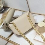 The latest Signature series combines modern style and elegant charm. It is carefully crafted from black cowhide leather. The front is decorated with a unique large logo embossed mark. It is matched with a chain shoulder strap made of intertwined letter logo chain links and leather, full of high-end feeling. Size: 21*6*12cm.