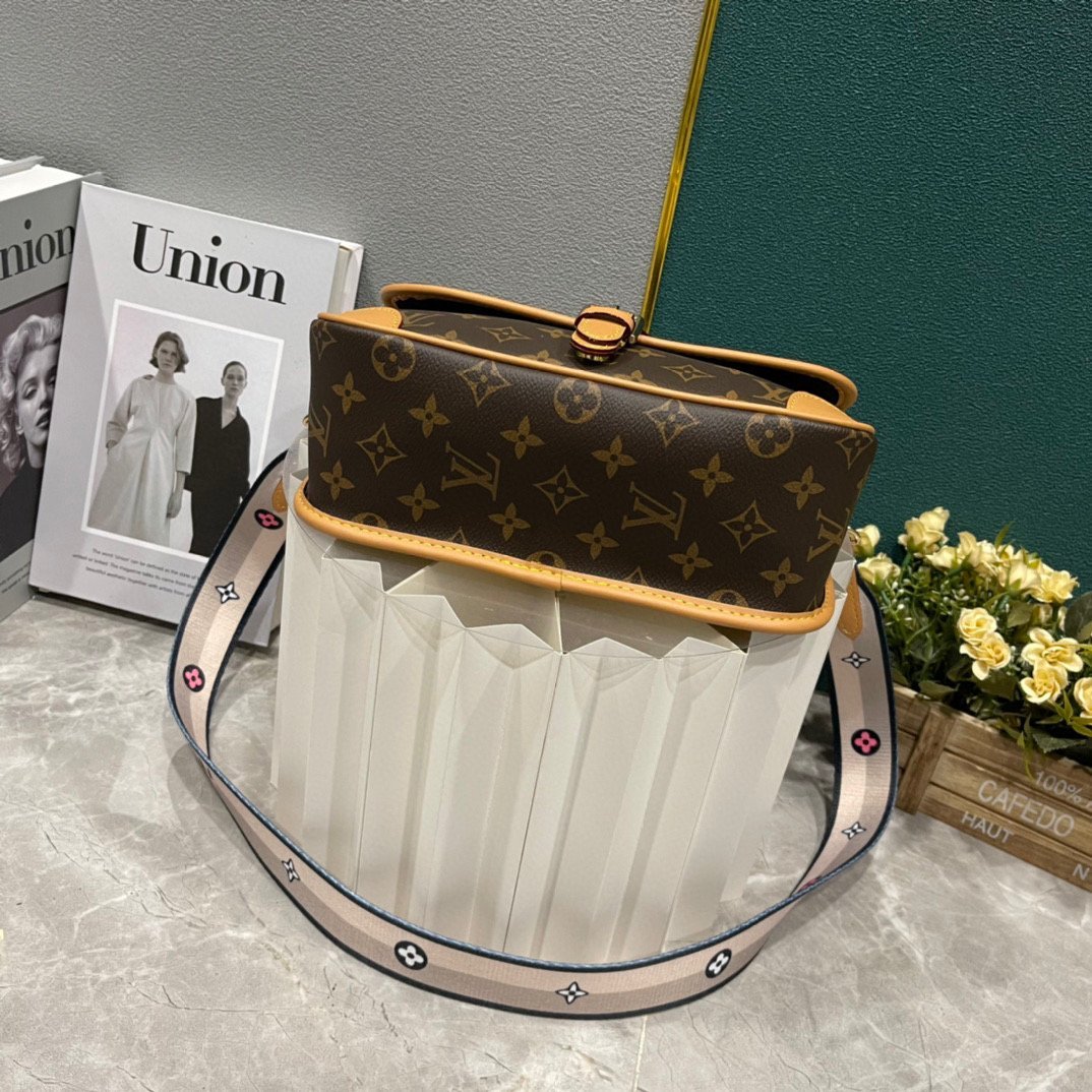 Handbag. This DIANE handbag is equipped with a leather shoulder strap (can be carried under the armpit) and an embroidered shoulder strap (can be carried on the shoulder or crossbody). Both can be removed. The capacity is sufficient for daily use. There is no pressure to hold the largest mobile phone. The belt-like buckle is a decoration. In fact, it is a magnet opening and closing, which is relatively convenient. There is a compartment in the middle for easy organization of things. There is also a zipper area where valuable items can be placed. Size: 25.0 × 9.0 × 15.0 CM.