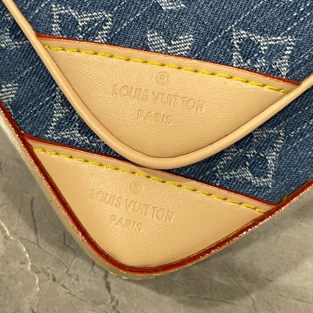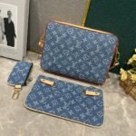 New season cotton denim brings an elegant temperament. Achieving a unique look through bleaching and sand washing processes. The pattern highlights the lines of this multi-functional mix-and-match design. In addition to having the functions of a traditional crossbody bag, it is also equipped with a detachable zipper bag and a coin purse attached to the strap. Size: 25.0 x 18.5 x 7.0 cm.