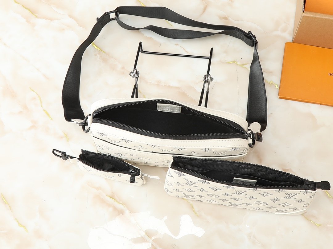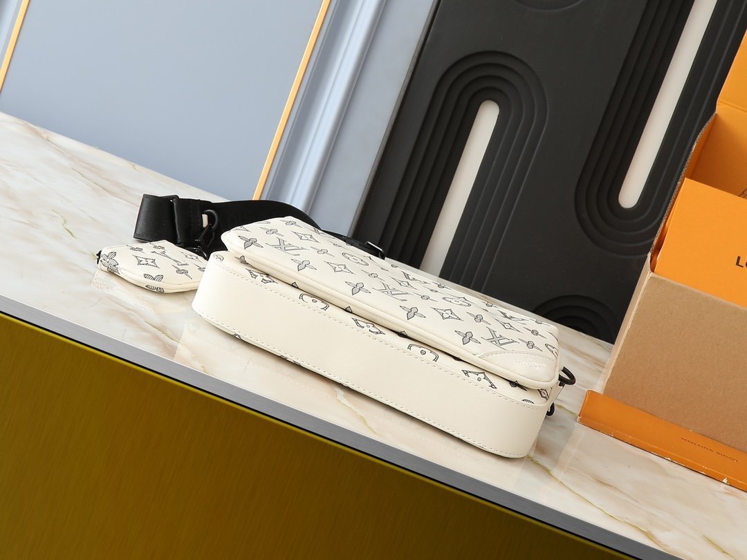 Upgrade the original M11648, M11645, M24754, M46603, M46602, M46604, M69443. This Trio messenger bag is made of Monogram embossed cowhide leather. The small coin purse on the front zipper pocket and shoulder strap is detachable. Together with the main compartment, it enriches the functional design. The detachable and adjustable jacquard fabric shoulder strap is marked with the brand logo, providing a comfortable shoulder and crossbody experience. Size: 25×18.5×7cm.