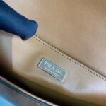 Minimalist elegance. a distinctive character and versatility meet in this shoulder bag with flap that reinterprets the geometric shape of the ’90s in a modern. current way. Made of fine brushed leather. an iconic material of Prada collections. the design with a horizontal line features a narrow adjustable shoulder strap that allows it to be worn as a crossbody or shoulder bag. The rectangular silhouette is decorated with the emblematic enameled metal triangle logo.