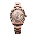 This Rolex Sky-Dweller 326935-0004 replica is a perfect 1:1 clone of the original. It features an automatic movement with a 9001 caliber and a power reserve of 60 hours. The case is made of 904L stainless steel with an Everose Gold color. and the bezel is also made of 904L stainless steel with the same color. The crystal is a sapphire and the size is 42.00mm with a thickness of 14.10mm. The bracelet is also made of 904L stainless steel with an adjustable link and an Everose Gold color. The dial is a Sundust color with Roman Numerals as indices and 904L stainless steel for the hour-markers and hands.