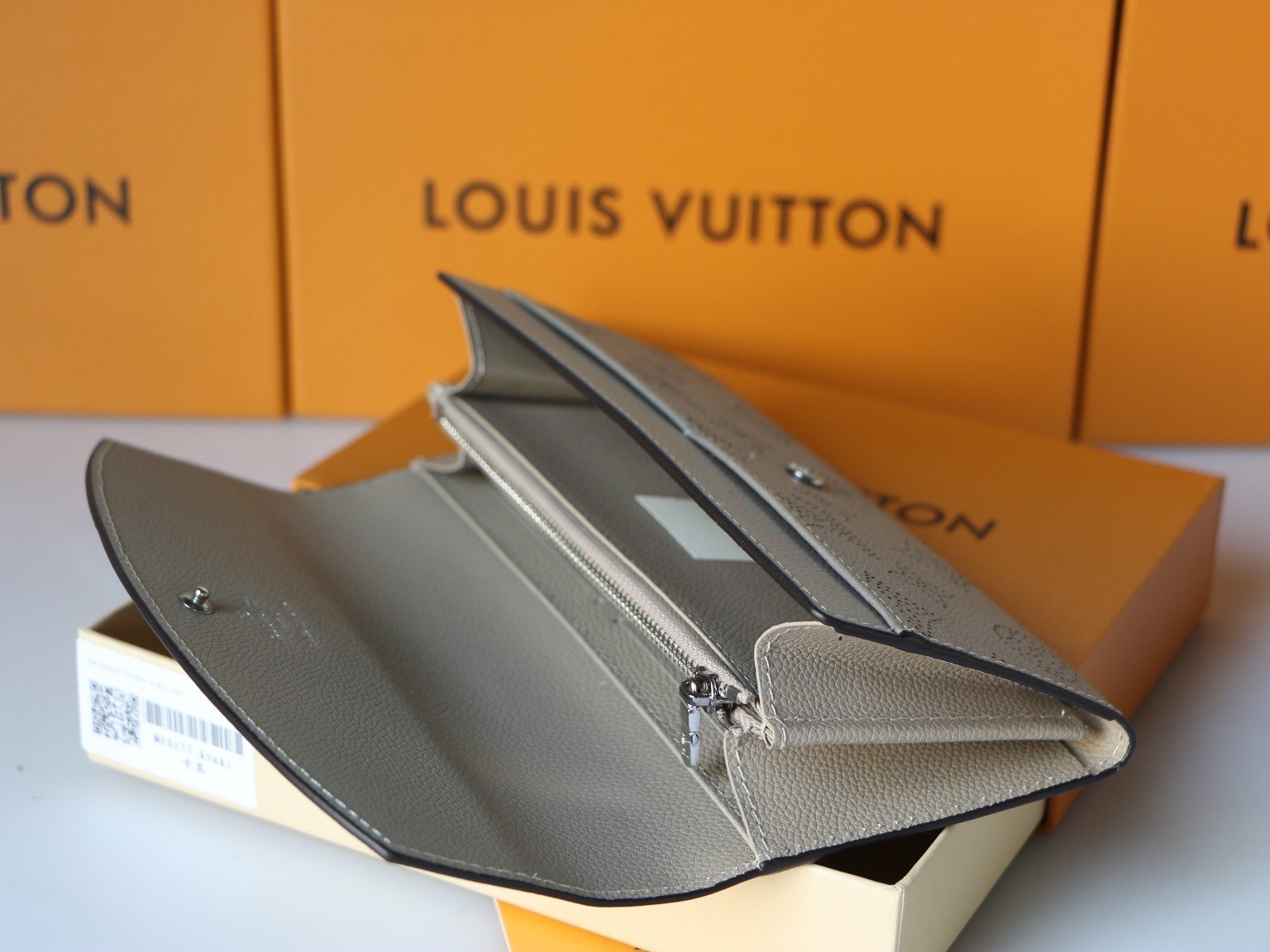 M60177/M60145/M60144/M60143 This delicate Iris wallet is sewn in Mahina calfskin, which is extra soft to the touch, and is adorned with a detailed Monogram punched flower pattern. The soft curved flip opens to reveal two large wide compartments, a zip change compartment and multiple credit card interlayers. The wallet is known for its delicate details, such as silver engraved snaps. size: 19 * 12 * 2cm
