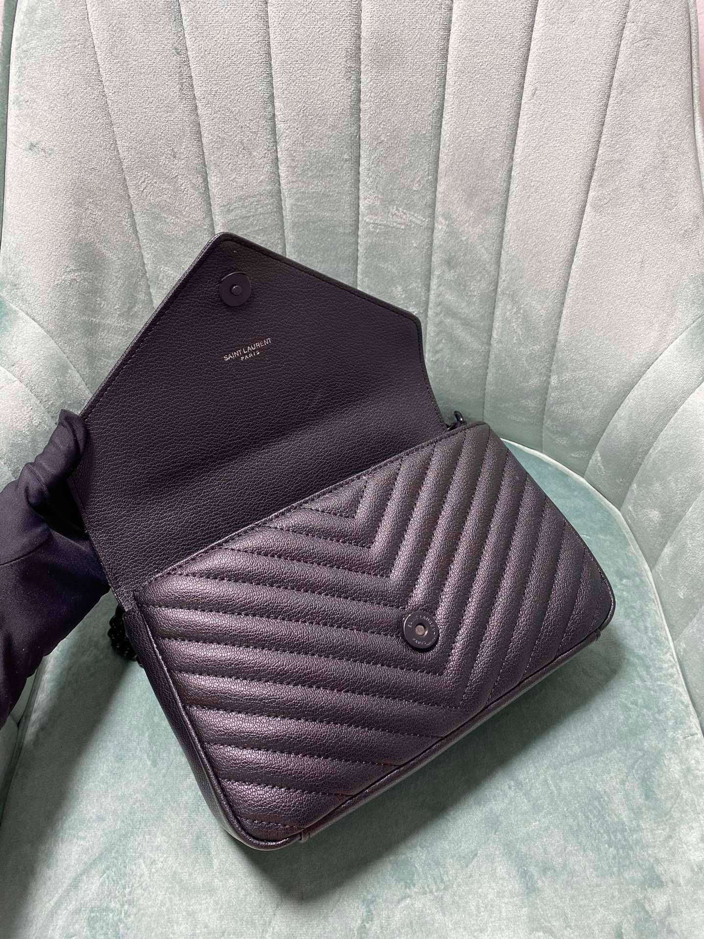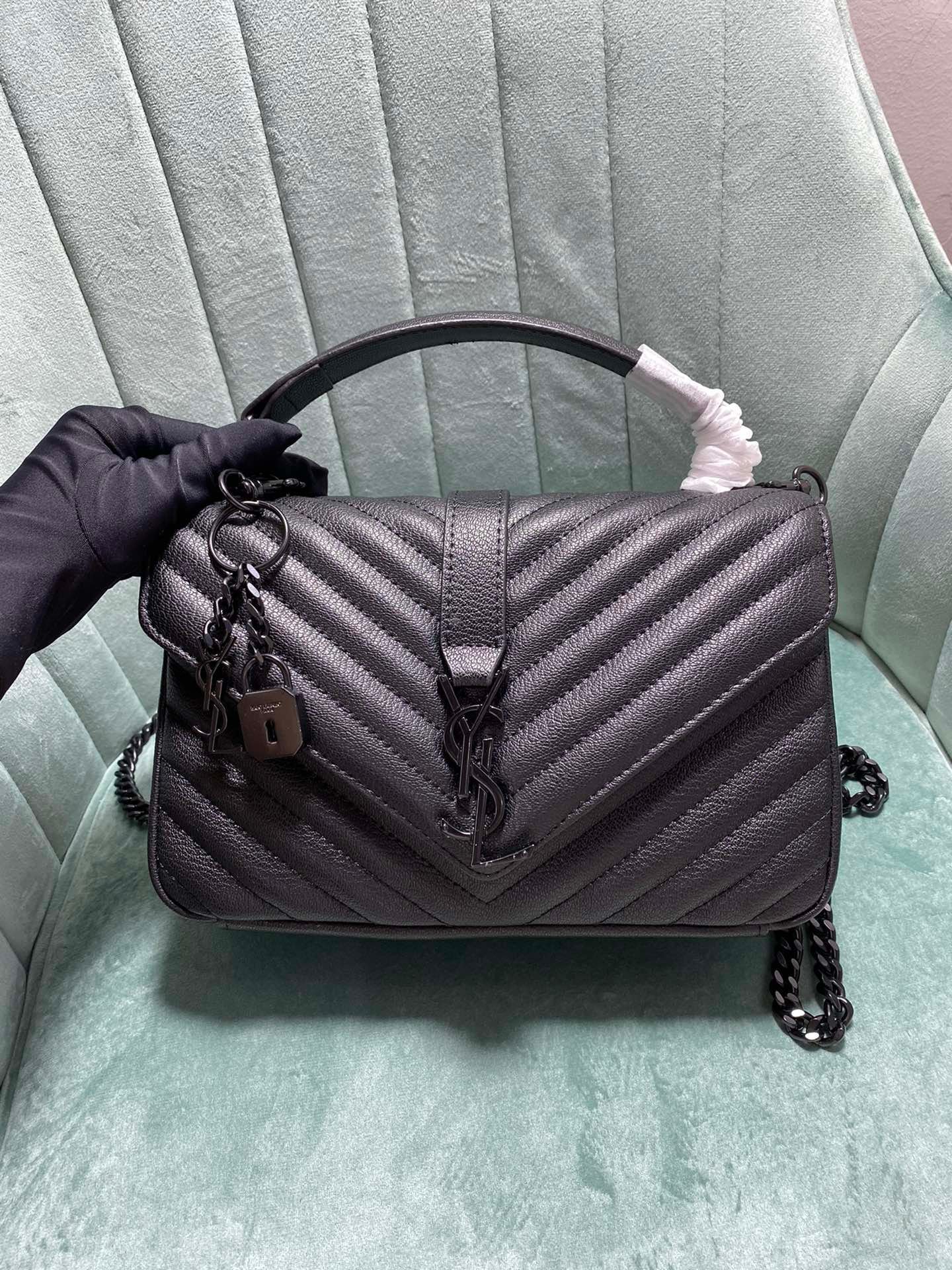 Large-sized cowhide with golden hardware. YSL Saint Laurent. A blockbuster at the counter. Exclusive in the market. European imported original leather. Hand-embroidered V-line. Super smooth, soft and comfortable. The bag shape is exquisite and practical. YSL metal buckle at the bag opening. The hardware is flawless. Exquisite craftsmanship in details. Equipped with an exquisite original pendant. Size: 24*18*8.5cm!