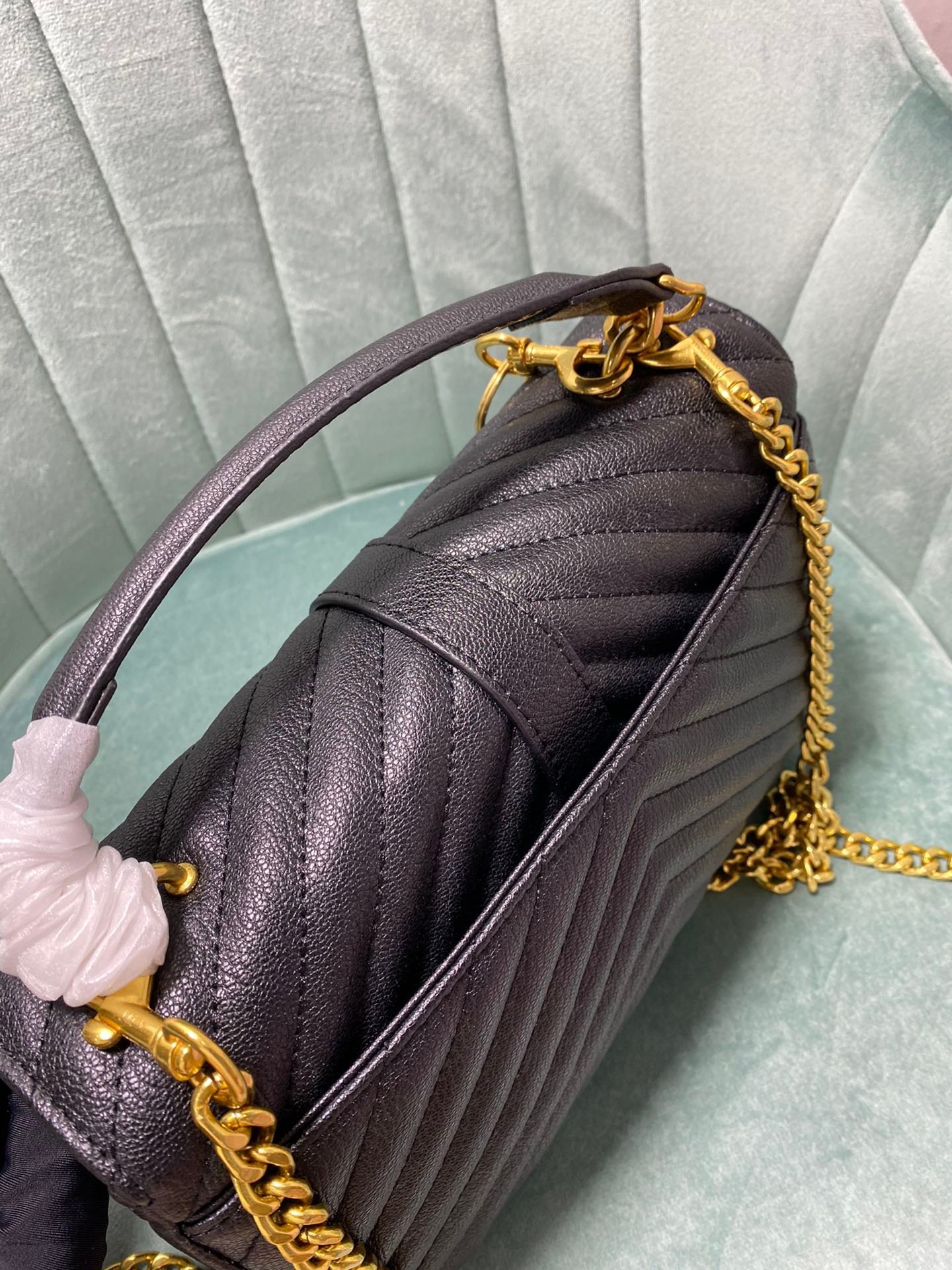 Large-sized cowhide with golden hardware. YSL Saint Laurent. A blockbuster at the counter. Exclusive in the market. European imported original leather. Hand-embroidered V-line. Super smooth, soft and comfortable. The bag shape is exquisite and practical. YSL metal buckle at the bag opening. The hardware is flawless. Exquisite craftsmanship in details. Equipped with an exquisite original pendant. Size: 24*18*8.5cm!
