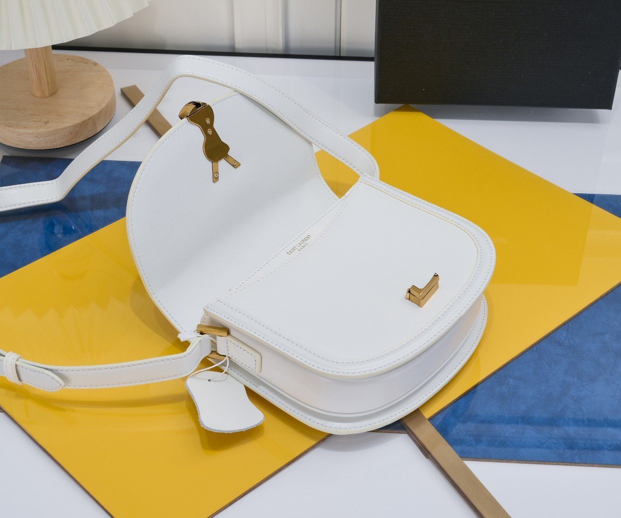 YSL new saddle bag with box. Cowhide leather. Can be slung diagonally or carried on the shoulder. With 3 inner compartments, inner zipper pocket and flat pocket. Original factory leather. Original factory hardware. Shiny retro buckle. Model number: 202326 brown with gold hardware. Size: 19×16×6 cm.