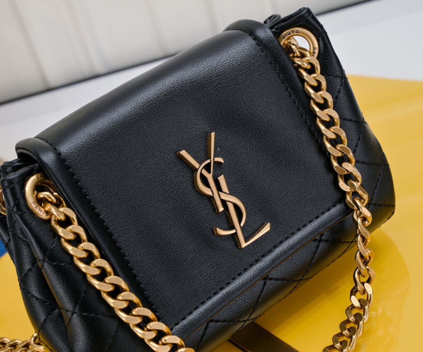 The return Mini Nolita became popular on the whole network as soon as it was released! After the size is reduced, it becomes more delicate and pleasant, especially for girls with a petite figure. The back is small and cool, but the small bag can hold the whole world! The metal letter logo is matched with a gold chain and a leather strap, which can be switched at will on one shoulder, crossbody, and underarm back! The lambskin feels soft and comfortable, and the upper body effect is invincible! The retro flip envelope cover is matched with a diamond quilting design, which has a classical and quiet temperament, and it looks very good.
