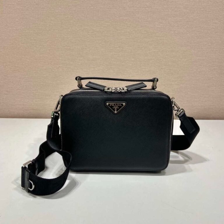 Replica Prada 2VH070 Saffiano Black leather Prada Brique bag